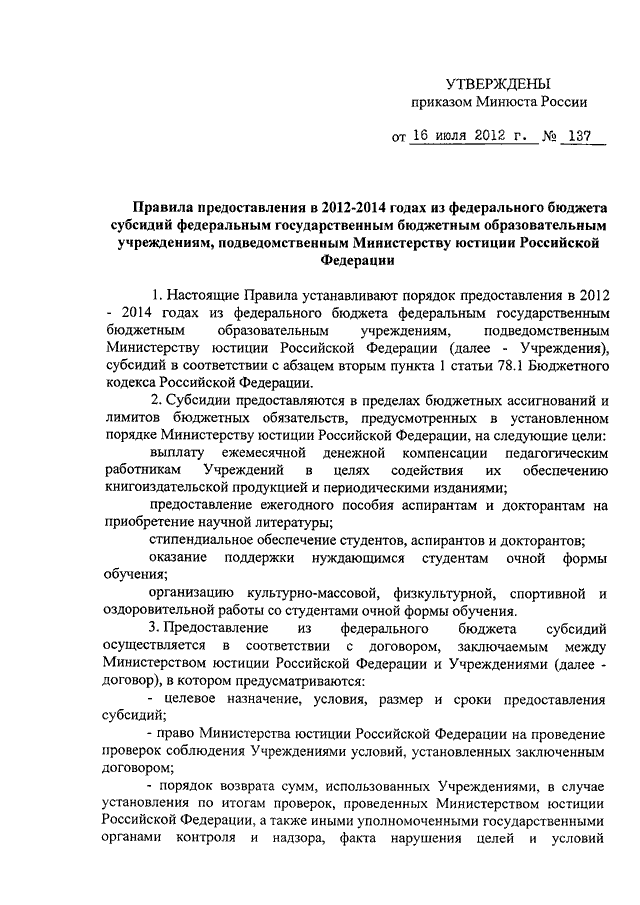 ПРИКАЗ Минюста РФ от 16.07.2012 N 137