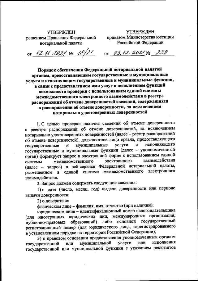 ПРИКАЗ Минюста РФ от 03.12.2021 N 239
