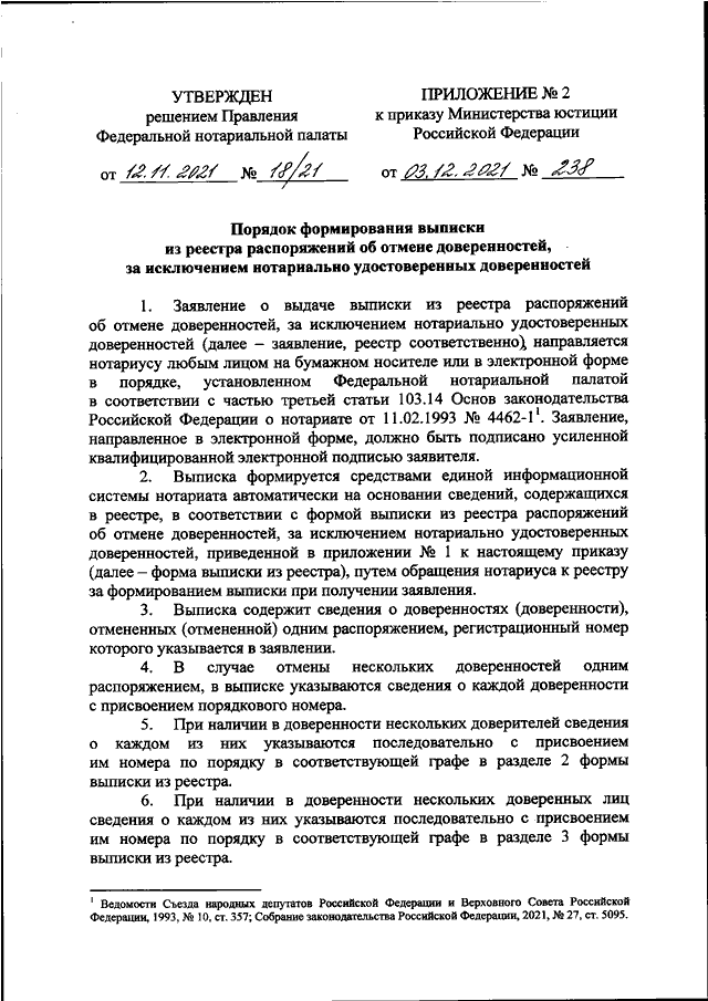 (вместе с "ВЫПИСКОЙ ИЗ РЕЕСТРА...", "ПОРЯДКОМ...", утв. Решением Правления Федеральной нотариальной палаты от 12.11.2021 N 18/21) (Зарегистрировано в Минюсте РФ 10.12.2021 N 66268)