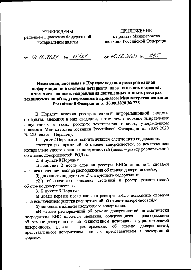 ПРИКАЗ Минюста РФ от 10.12.2021 N 245