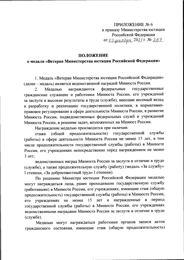 ПРИКАЗ Минюста РФ от 29.12.2021 N 267