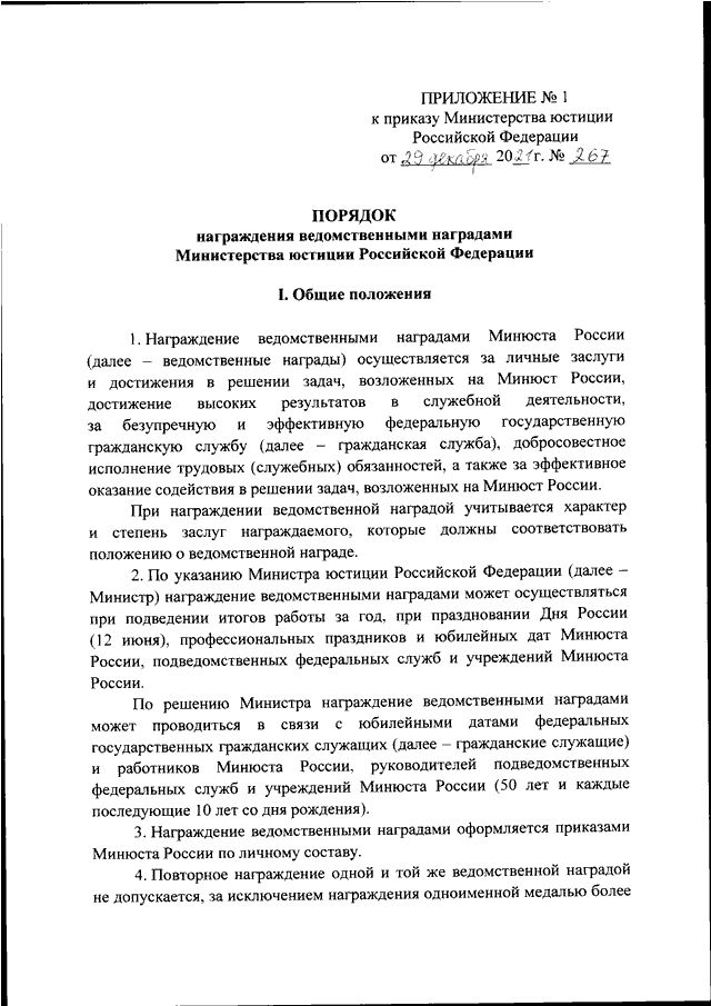 ПРИКАЗ Минюста РФ от 29.12.2021 N 267