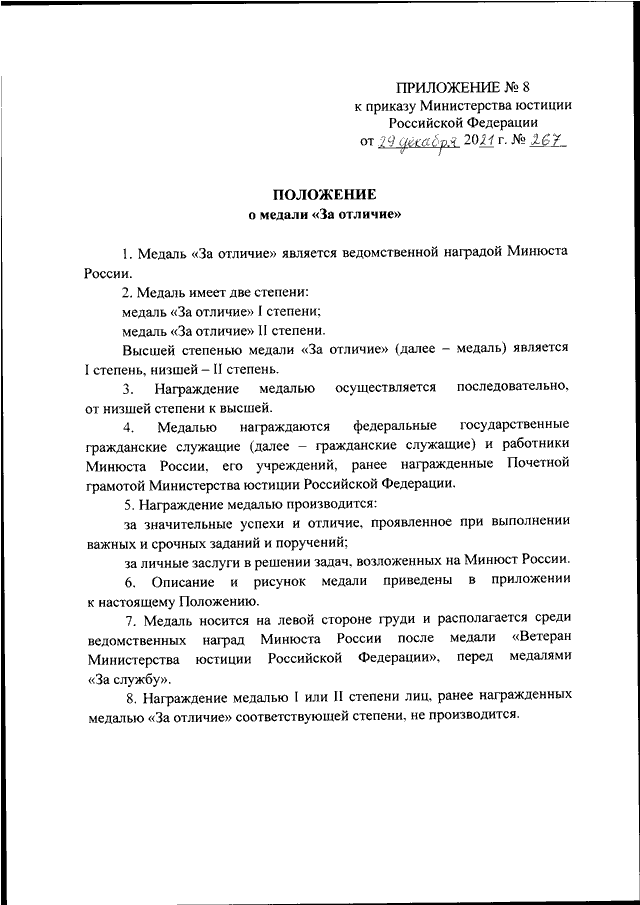 ПРИКАЗ Минюста РФ от 29.12.2021 N 267