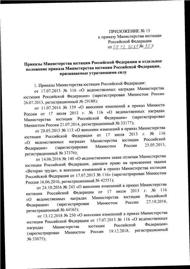 ПРИКАЗ Минюста РФ от 29.12.2021 N 267