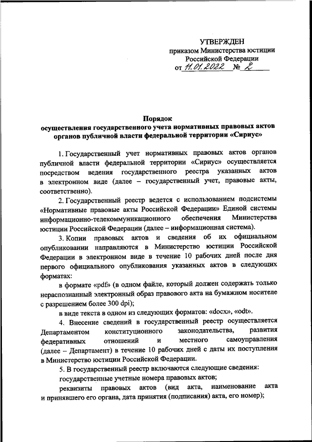 ПРИКАЗ Минюста РФ от 11.01.2022 N 2