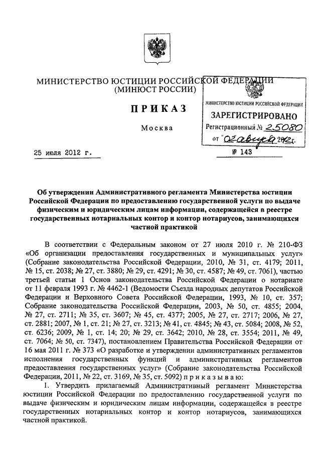 ПРИКАЗ Минюста РФ от 25.07.2012 N 143