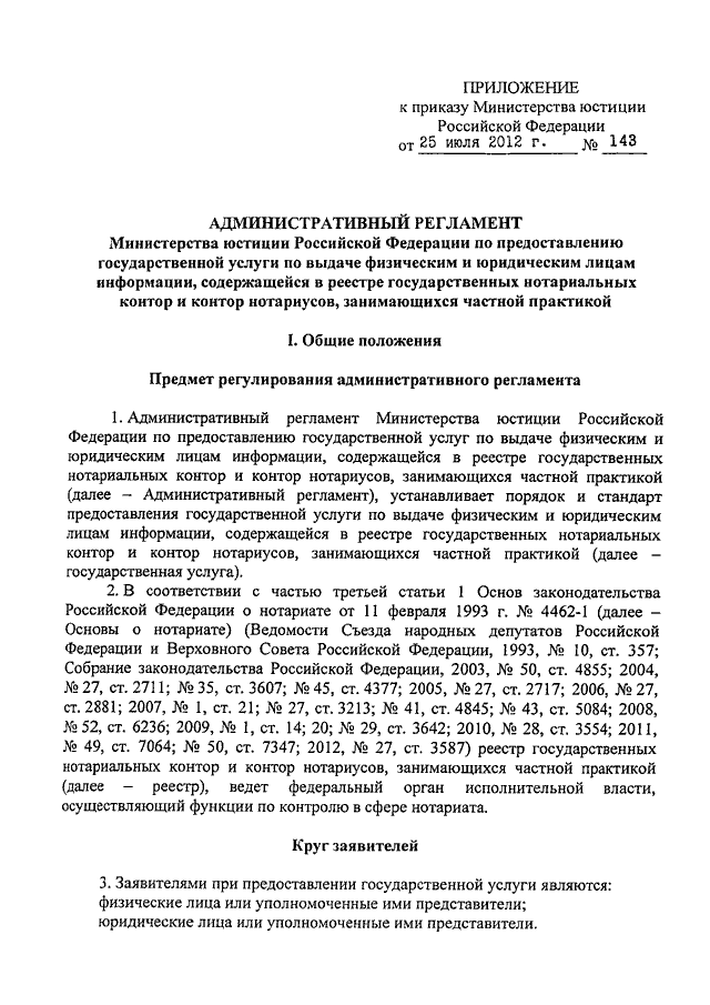 ПРИКАЗ Минюста РФ от 25.07.2012 N 143