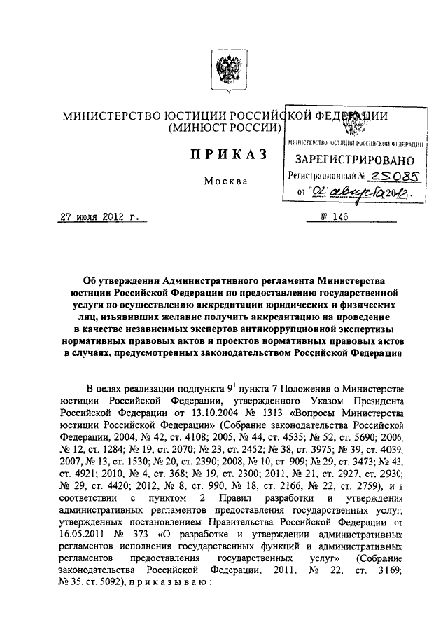 ПРИКАЗ Минюста РФ от 27.07.2012 N 146