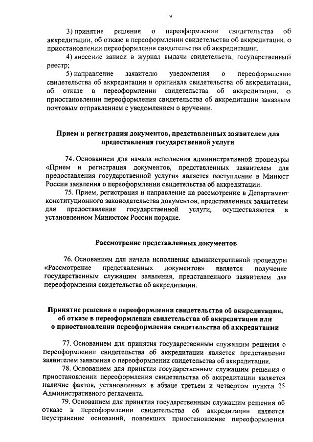 "ОБ УТВЕРЖДЕНИИ АДМИНИСТРАТИВНОГО РЕГЛАМЕНТА МИНИСТЕРСТВА ЮСТИЦИИ РОССИЙСКОЙ ФЕДЕРАЦИИ ПО ПРЕДОСТАВЛЕНИЮ ГОСУДАРСТВЕННОЙ УСЛУГИ ПО ОСУЩЕСТВЛЕНИЮ АККРЕДИТАЦИИ ЮРИДИЧЕСКИХ И ФИЗИЧЕСКИХ ЛИЦ, ИЗЪЯВИВШИХ ЖЕЛАНИЕ ПОЛУЧИТЬ АККРЕДИТАЦИЮ НА ПРОВЕДЕНИЕ В КАЧЕСТВЕ НЕЗАВИСИМЫХ ЭКСПЕРТОВ АНТИКОРРУПЦИОННОЙ ЭКСПЕРТИЗЫ НОРМАТИВНЫХ ПРАВОВЫХ АКТОВ И ПРОЕКТОВ НОРМАТИВНЫХ ПРАВОВЫХ АКТОВ В СЛУЧАЯХ, ПРЕДУСМОТРЕННЫХ ЗАКОНОДАТЕЛЬСТВОМ РОССИЙСКОЙ ФЕДЕРАЦИИ"