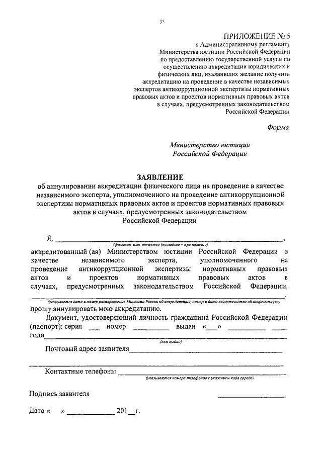 "ОБ УТВЕРЖДЕНИИ АДМИНИСТРАТИВНОГО РЕГЛАМЕНТА МИНИСТЕРСТВА ЮСТИЦИИ РОССИЙСКОЙ ФЕДЕРАЦИИ ПО ПРЕДОСТАВЛЕНИЮ ГОСУДАРСТВЕННОЙ УСЛУГИ ПО ОСУЩЕСТВЛЕНИЮ АККРЕДИТАЦИИ ЮРИДИЧЕСКИХ И ФИЗИЧЕСКИХ ЛИЦ, ИЗЪЯВИВШИХ ЖЕЛАНИЕ ПОЛУЧИТЬ АККРЕДИТАЦИЮ НА ПРОВЕДЕНИЕ В КАЧЕСТВЕ НЕЗАВИСИМЫХ ЭКСПЕРТОВ АНТИКОРРУПЦИОННОЙ ЭКСПЕРТИЗЫ НОРМАТИВНЫХ ПРАВОВЫХ АКТОВ И ПРОЕКТОВ НОРМАТИВНЫХ ПРАВОВЫХ АКТОВ В СЛУЧАЯХ, ПРЕДУСМОТРЕННЫХ ЗАКОНОДАТЕЛЬСТВОМ РОССИЙСКОЙ ФЕДЕРАЦИИ"