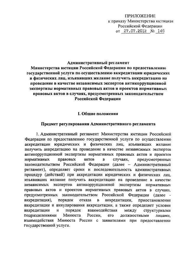 ПРИКАЗ Минюста РФ от 27.07.2012 N 146
