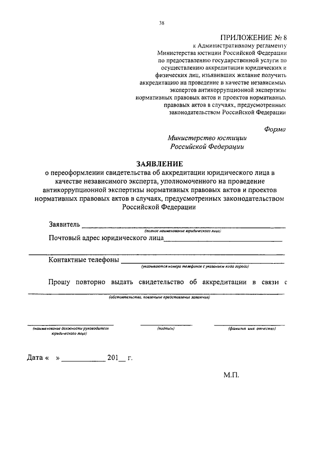 "ОБ УТВЕРЖДЕНИИ АДМИНИСТРАТИВНОГО РЕГЛАМЕНТА МИНИСТЕРСТВА ЮСТИЦИИ РОССИЙСКОЙ ФЕДЕРАЦИИ ПО ПРЕДОСТАВЛЕНИЮ ГОСУДАРСТВЕННОЙ УСЛУГИ ПО ОСУЩЕСТВЛЕНИЮ АККРЕДИТАЦИИ ЮРИДИЧЕСКИХ И ФИЗИЧЕСКИХ ЛИЦ, ИЗЪЯВИВШИХ ЖЕЛАНИЕ ПОЛУЧИТЬ АККРЕДИТАЦИЮ НА ПРОВЕДЕНИЕ В КАЧЕСТВЕ НЕЗАВИСИМЫХ ЭКСПЕРТОВ АНТИКОРРУПЦИОННОЙ ЭКСПЕРТИЗЫ НОРМАТИВНЫХ ПРАВОВЫХ АКТОВ И ПРОЕКТОВ НОРМАТИВНЫХ ПРАВОВЫХ АКТОВ В СЛУЧАЯХ, ПРЕДУСМОТРЕННЫХ ЗАКОНОДАТЕЛЬСТВОМ РОССИЙСКОЙ ФЕДЕРАЦИИ"