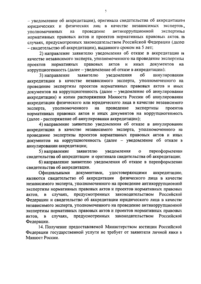 "ОБ УТВЕРЖДЕНИИ АДМИНИСТРАТИВНОГО РЕГЛАМЕНТА МИНИСТЕРСТВА ЮСТИЦИИ РОССИЙСКОЙ ФЕДЕРАЦИИ ПО ПРЕДОСТАВЛЕНИЮ ГОСУДАРСТВЕННОЙ УСЛУГИ ПО ОСУЩЕСТВЛЕНИЮ АККРЕДИТАЦИИ ЮРИДИЧЕСКИХ И ФИЗИЧЕСКИХ ЛИЦ, ИЗЪЯВИВШИХ ЖЕЛАНИЕ ПОЛУЧИТЬ АККРЕДИТАЦИЮ НА ПРОВЕДЕНИЕ В КАЧЕСТВЕ НЕЗАВИСИМЫХ ЭКСПЕРТОВ АНТИКОРРУПЦИОННОЙ ЭКСПЕРТИЗЫ НОРМАТИВНЫХ ПРАВОВЫХ АКТОВ И ПРОЕКТОВ НОРМАТИВНЫХ ПРАВОВЫХ АКТОВ В СЛУЧАЯХ, ПРЕДУСМОТРЕННЫХ ЗАКОНОДАТЕЛЬСТВОМ РОССИЙСКОЙ ФЕДЕРАЦИИ"