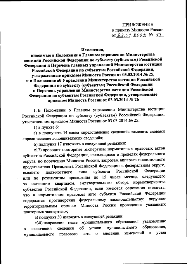 ПРИКАЗ Минюста РФ от 28.01.2022 N 13
