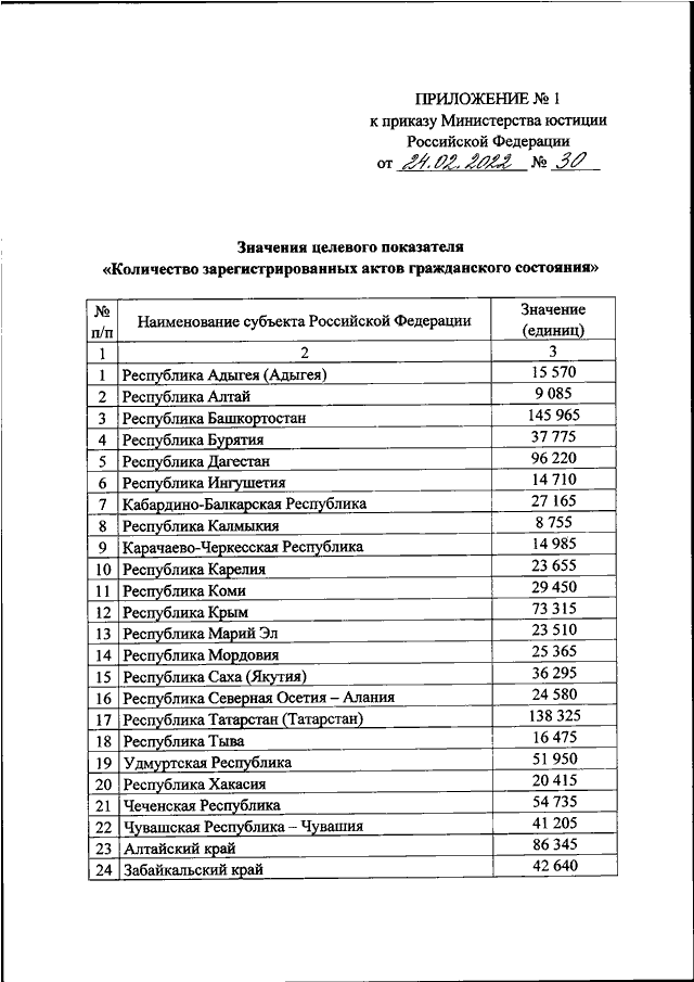 ПРИКАЗ Минюста РФ от 24.02.2022 N 30