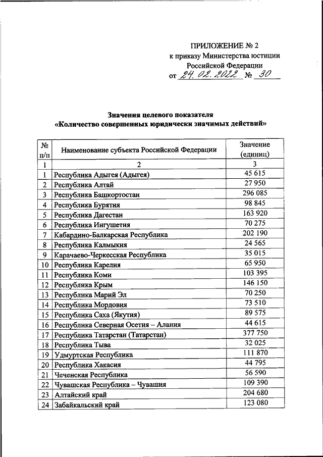 ПРИКАЗ Минюста РФ от 24.02.2022 N 30
