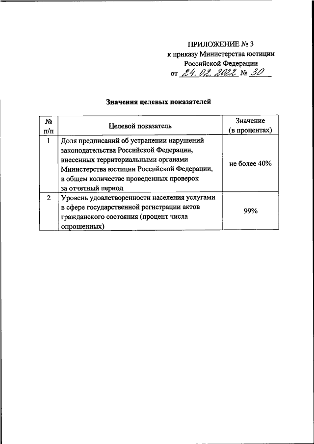 ПРИКАЗ Минюста РФ от 24.02.2022 N 30