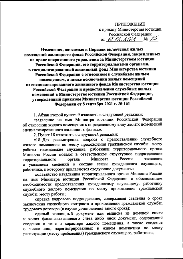 ПРИКАЗ Минюста РФ от 18.02.2022 N 25
