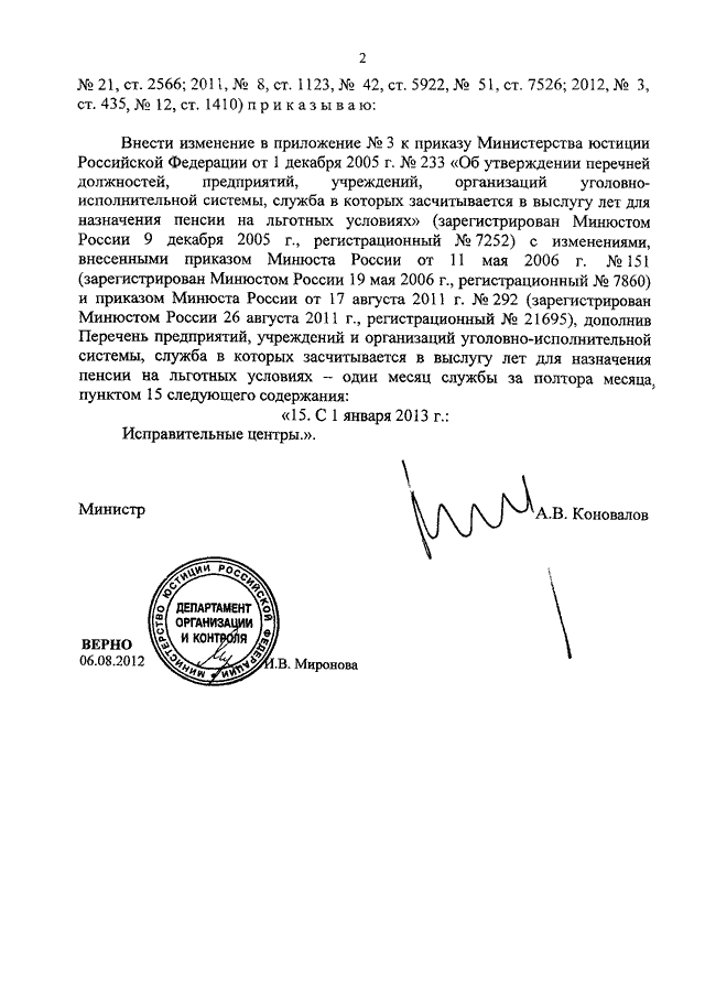 ЮСТИЦИИ РОССИЙСКОЙ ФЕДЕРАЦИИ ОТ 1 ДЕКАБРЯ 2005 Г. N 233 "ОБ