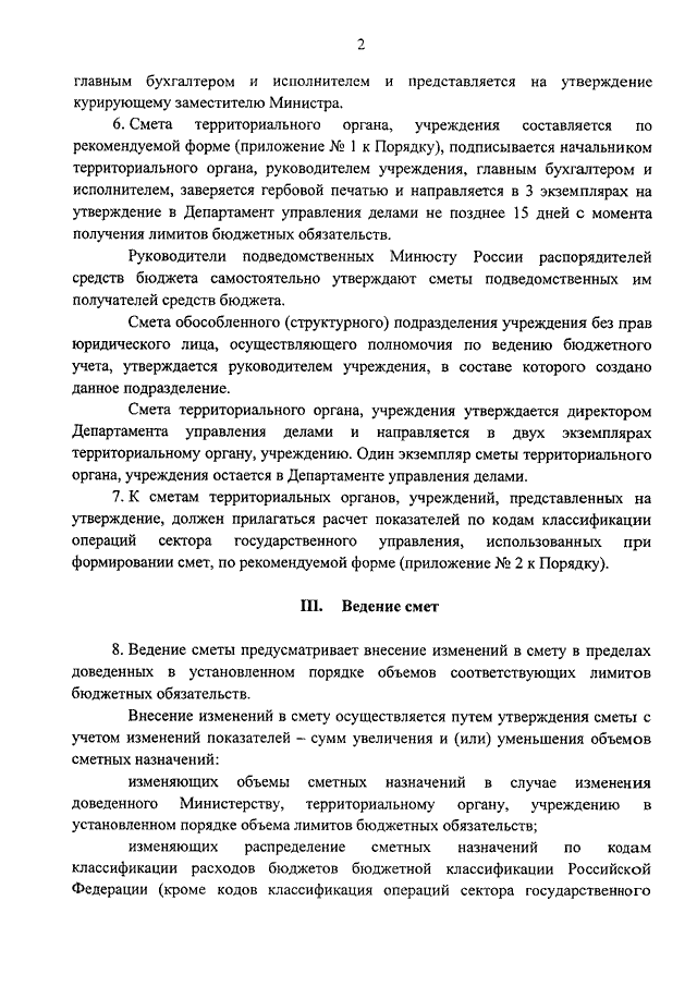 "ОБ УТВЕРЖДЕНИИ ПОРЯДКА СОСТАВЛЕНИЯ, УТВЕРЖДЕНИЯ И ВЕДЕНИЯ БЮДЖЕТНЫХ СМЕТ ЦЕНТРАЛЬНОГО АППАРАТА МИНЮСТА РОССИИ, ЕГО ТЕРРИТОРИАЛЬНЫХ ОРГАНОВ И ФЕДЕРАЛЬНЫХ КАЗЕННЫХ УЧРЕЖДЕНИЙ"
