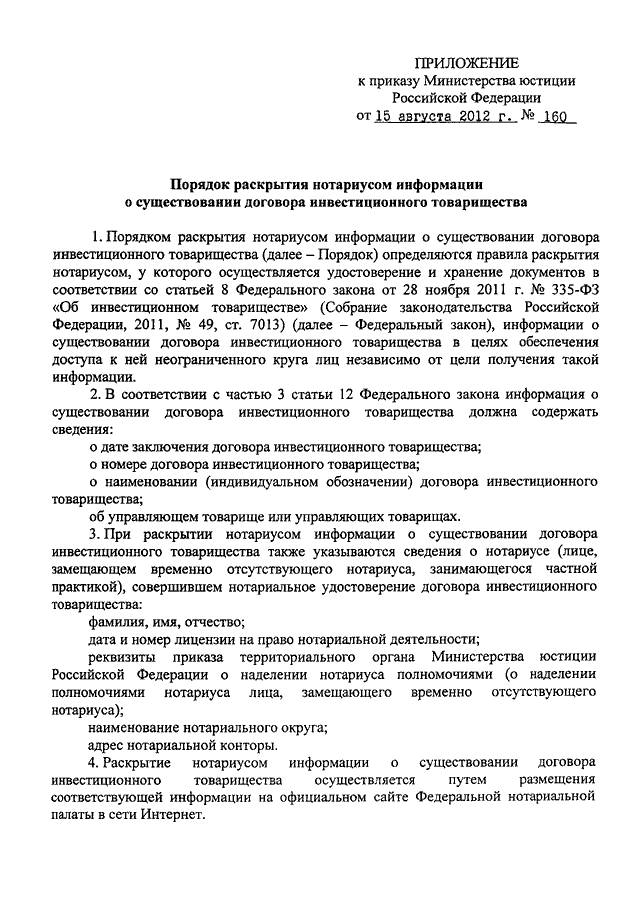 ПРИКАЗ Минюста РФ от 15.08.2012 N 160