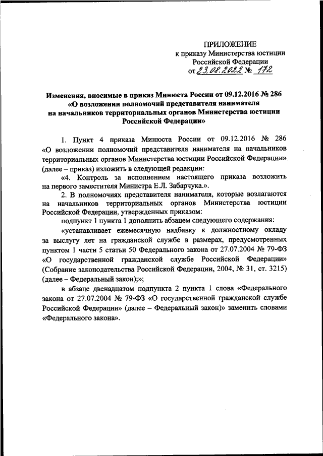 ПРИКАЗ Минюста РФ от 23.08.2022 N 172