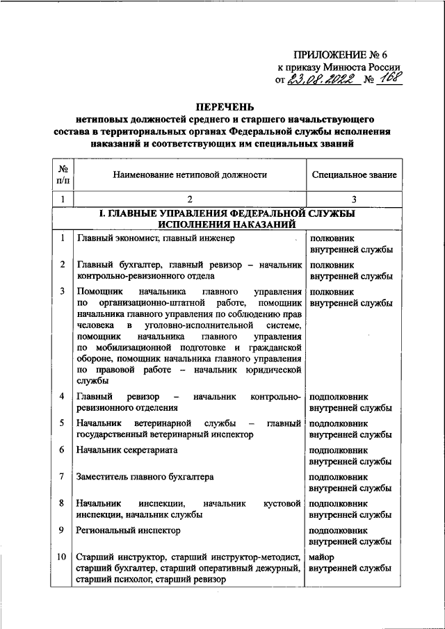 "ОБ УТВЕРЖДЕНИИ ПЕРЕЧНЕЙ НЕТИПОВЫХ ДОЛЖНОСТЕЙ МЛАДШЕГО, СРЕДНЕГО И СТАРШЕГО НАЧАЛЬСТВУЮЩЕГО СОСТАВА В УГОЛОВНО - ИСПОЛНИТЕЛЬНОЙ СИСТЕМЕ РОССИЙСКОЙ ФЕДЕРАЦИИ И СООТВЕТСТВУЮЩИХ ИМ СПЕЦИАЛЬНЫХ ЗВАНИЙ"