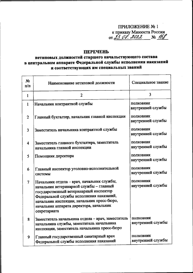 ПРИКАЗ Минюста РФ от 23.08.2022 N 168
