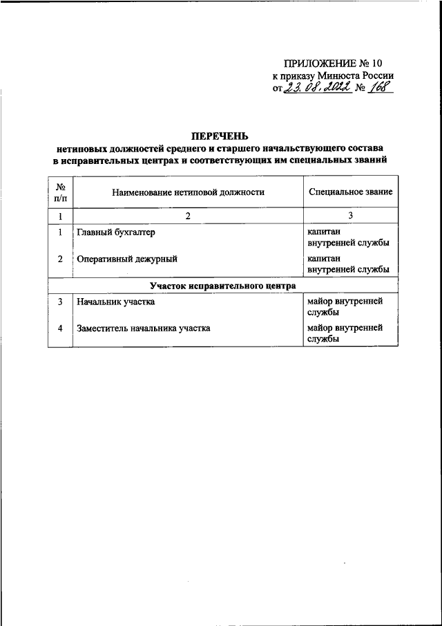 "ОБ УТВЕРЖДЕНИИ ПЕРЕЧНЕЙ НЕТИПОВЫХ ДОЛЖНОСТЕЙ МЛАДШЕГО, СРЕДНЕГО И СТАРШЕГО НАЧАЛЬСТВУЮЩЕГО СОСТАВА В УГОЛОВНО - ИСПОЛНИТЕЛЬНОЙ СИСТЕМЕ РОССИЙСКОЙ ФЕДЕРАЦИИ И СООТВЕТСТВУЮЩИХ ИМ СПЕЦИАЛЬНЫХ ЗВАНИЙ"