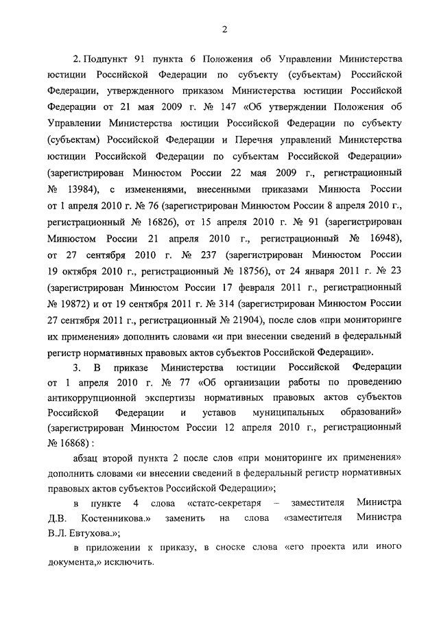 "О ВНЕСЕНИИ ИЗМЕНЕНИЙ В НОРМАТИВНЫЕ ПРАВОВЫЕ АКТЫ МИНИСТЕРСТВА ЮСТИЦИИ РОССИЙСКОЙ ФЕДЕРАЦИИ"