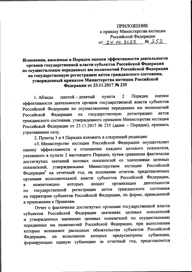 ПРИКАЗ Минюста РФ от 24.10.2022 N 252