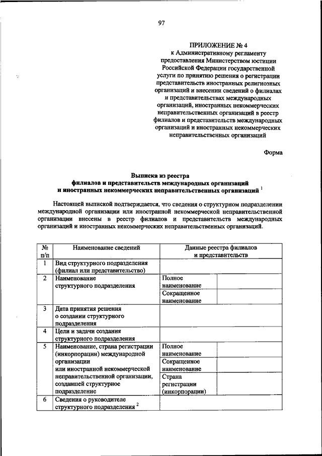 "ОБ УТВЕРЖДЕНИИ АДМИНИСТРАТИВНОГО РЕГЛАМЕНТА ПРЕДОСТАВЛЕНИЯ МИНИСТЕРСТВОМ ЮСТИЦИИ РОССИЙСКОЙ ФЕДЕРАЦИИ ГОСУДАРСТВЕННОЙ УСЛУГИ ПО ПРИНЯТИЮ РЕШЕНИЯ О РЕГИСТРАЦИИ ПРЕДСТАВИТЕЛЬСТВ ИНОСТРАННЫХ РЕЛИГИОЗНЫХ ОРГАНИЗАЦИЙ И ВНЕСЕНИИ СВЕДЕНИЙ О ФИЛИАЛАХ И ПРЕДСТАВИТЕЛЬСТВАХ МЕЖДУНАРОДНЫХ ОРГАНИЗАЦИЙ, ИНОСТРАННЫХ НЕКОММЕРЧЕСКИХ НЕПРАВИТЕЛЬСТВЕННЫХ ОРГАНИЗАЦИЙ В РЕЕСТР ФИЛИАЛОВ И ПРЕДСТАВИТЕЛЬСТВ МЕЖДУНАРОДНЫХ ОРГАНИЗАЦИЙ И ИНОСТРАННЫХ НЕКОММЕРЧЕСКИХ НЕПРАВИТЕЛЬСТВЕННЫХ ОРГАНИЗАЦИЙ"