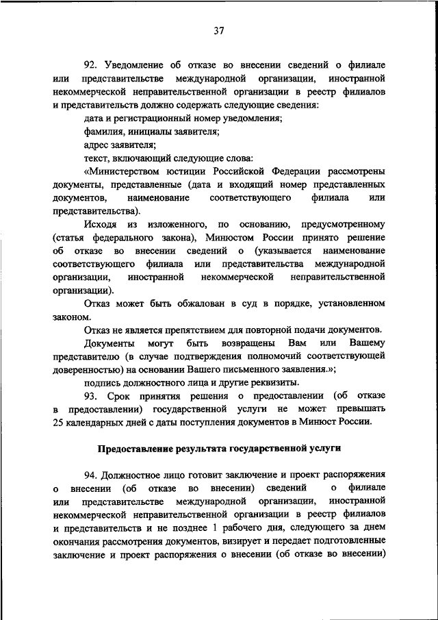 "ОБ УТВЕРЖДЕНИИ АДМИНИСТРАТИВНОГО РЕГЛАМЕНТА ПРЕДОСТАВЛЕНИЯ МИНИСТЕРСТВОМ ЮСТИЦИИ РОССИЙСКОЙ ФЕДЕРАЦИИ ГОСУДАРСТВЕННОЙ УСЛУГИ ПО ПРИНЯТИЮ РЕШЕНИЯ О РЕГИСТРАЦИИ ПРЕДСТАВИТЕЛЬСТВ ИНОСТРАННЫХ РЕЛИГИОЗНЫХ ОРГАНИЗАЦИЙ И ВНЕСЕНИИ СВЕДЕНИЙ О ФИЛИАЛАХ И ПРЕДСТАВИТЕЛЬСТВАХ МЕЖДУНАРОДНЫХ ОРГАНИЗАЦИЙ, ИНОСТРАННЫХ НЕКОММЕРЧЕСКИХ НЕПРАВИТЕЛЬСТВЕННЫХ ОРГАНИЗАЦИЙ В РЕЕСТР ФИЛИАЛОВ И ПРЕДСТАВИТЕЛЬСТВ МЕЖДУНАРОДНЫХ ОРГАНИЗАЦИЙ И ИНОСТРАННЫХ НЕКОММЕРЧЕСКИХ НЕПРАВИТЕЛЬСТВЕННЫХ ОРГАНИЗАЦИЙ"