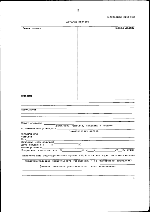 "О ВНЕСЕНИИ ИЗМЕНЕНИЙ В ПОРЯДОК ФОРМИРОВАНИЯ НАПРАВЛЯЕМОЙ В ОРГАНЫ ВНУТРЕННИХ ДЕЛ ДАКТИЛОСКОПИЧЕСКОЙ ИНФОРМАЦИИ, УТВЕРЖДЕННЫЙ ПРИКАЗОМ МВД РОССИИ, МЧС РОССИИ, МИНИСТРА ОБОРОНЫ РОССИЙСКОЙ ФЕДЕРАЦИИ, МИНФИНА РОССИИ, МИНЮСТА РОССИИ, МИНТРАНСА РОССИИ, СВР РОССИИ, ФСБ РОССИИ, ФСО РОССИИ, РОСГВАРДИИ, ГУСП, ГЕНЕРАЛЬНОЙ ПРОКУРАТУРЫ РОССИЙСКОЙ ФЕДЕРАЦИИ, СК РОССИИ ОТ 23 СЕНТЯБРЯ 2020 Г. N 659/717/473/208Н/209/385/63/429/185/376/145/502/94"