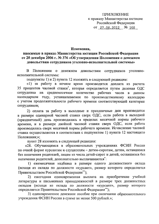 ПРИКАЗ Минюста РФ от 27.08.2012 N 168