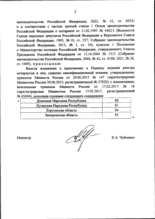 ПРИКАЗОМ МИНЮСТА РОССИИ ОТ 29.06.2015 N 147"