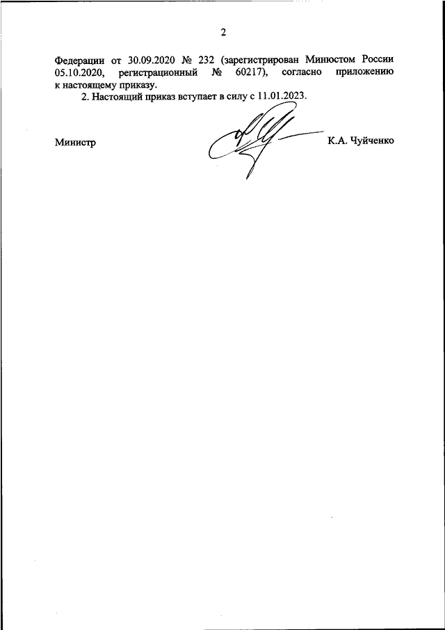 ЮСТИЦИИ РОССИЙСКОЙ ФЕДЕРАЦИИ ОТ 30.09.2020 N 232"