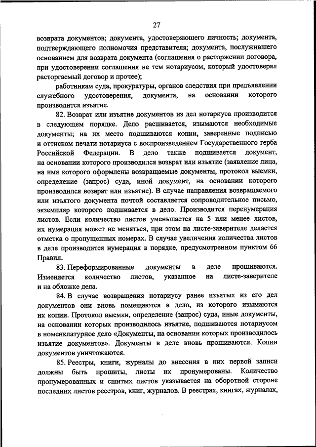 "ОБ УТВЕРЖДЕНИИ ПРАВИЛ НОТАРИАЛЬНОГО ДЕЛОПРОИЗВОДСТВА"