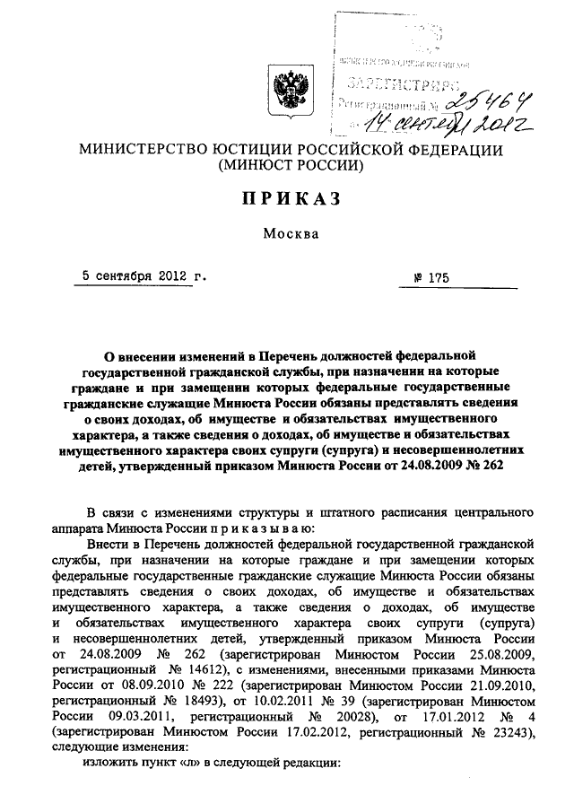 ПРИКАЗ Минюста РФ от 05.09.2012 N 175