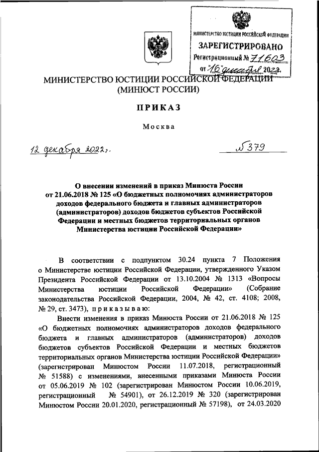 ПРИКАЗ Минюста РФ от 12.12.2022 N 379