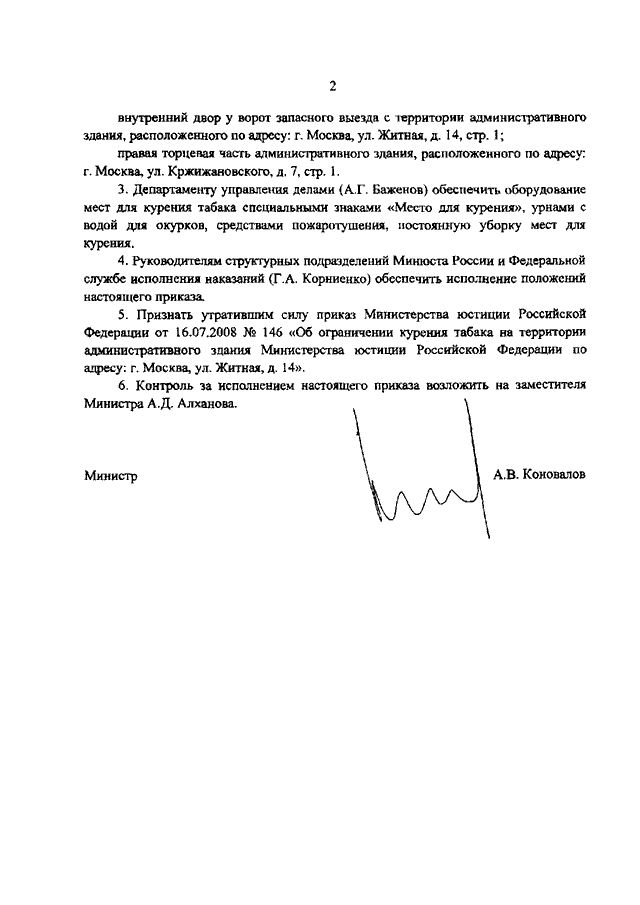 "ОБ ОГРАНИЧЕНИИ КУРЕНИЯ ТАБАКА НА ТЕРРИТОРИИ АДМИНИСТРАТИВНЫХ ЗДАНИЙ МИНИСТЕРСТВА ЮСТИЦИИ РОССИЙСКОЙ ФЕДЕРАЦИИ"