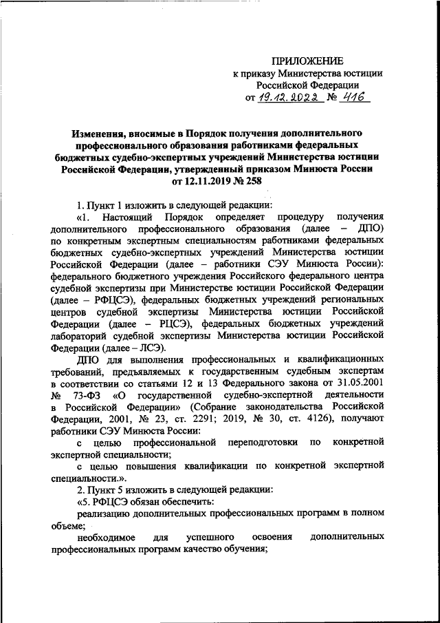 ПРИКАЗ Минюста РФ от 19.12.2022 N 416