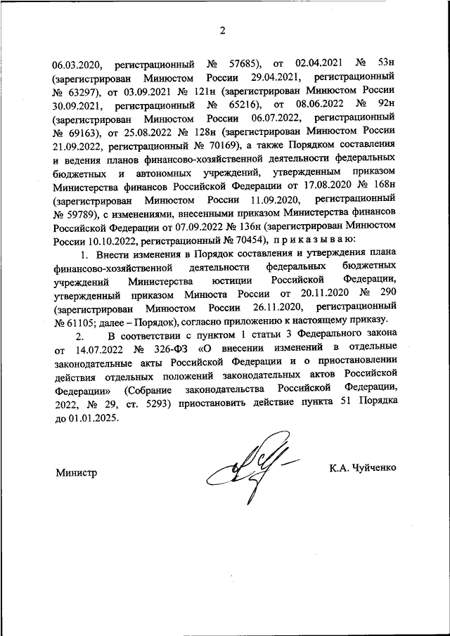 ПРИКАЗОМ МИНЮСТА РОССИИ ОТ 20.11.2020 N 290, И ПРИОСТАНОВЛЕНИИ