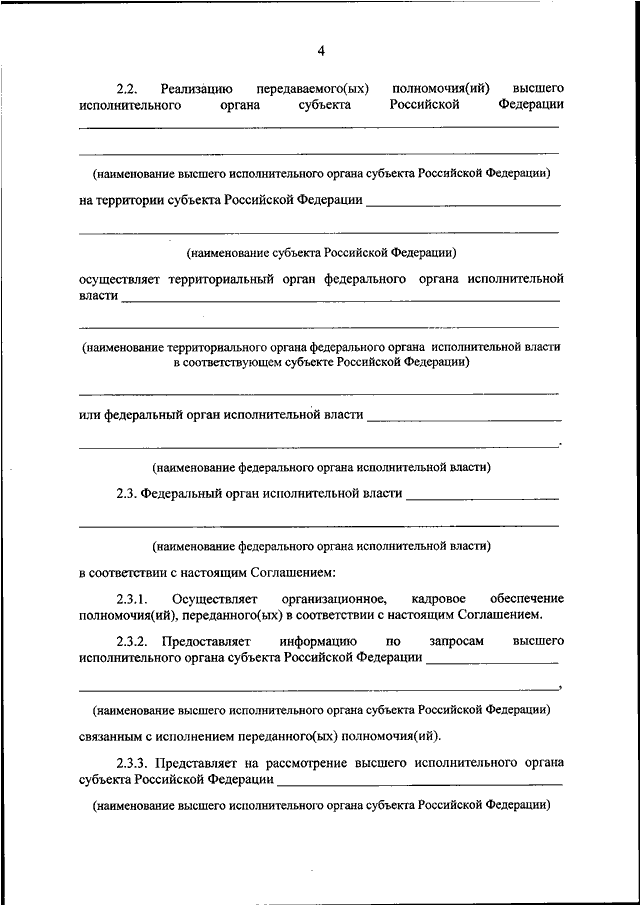 "ОБ УТВЕРЖДЕНИИ ПРИМЕРНЫХ ФОРМ СОГЛАШЕНИЯ МЕЖДУ ФЕДЕРАЛЬНЫМ ОРГАНОМ ИСПОЛНИТЕЛЬНОЙ ВЛАСТИ И ВЫСШИМ ИСПОЛНИТЕЛЬНЫМ ОРГАНОМ СУБЪЕКТА РОССИЙСКОЙ ФЕДЕРАЦИИ О ПЕРЕДАЧЕ ВЫСШЕМУ ИСПОЛНИТЕЛЬНОМУ ОРГАНУ СУБЪЕКТА РОССИЙСКОЙ ФЕДЕРАЦИИ ОСУЩЕСТВЛЕНИЯ ЧАСТИ ПОЛНОМОЧИЙ ФЕДЕРАЛЬНОГО ОРГАНА ИСПОЛНИТЕЛЬНОЙ ВЛАСТИ, СОГЛАШЕНИЯ МЕЖДУ ФЕДЕРАЛЬНЫМ ОРГАНОМ ИСПОЛНИТЕЛЬНОЙ ВЛАСТИ И ВЫСШИМ ИСПОЛНИТЕЛЬНЫМ ОРГАНОМ СУБЪЕКТА РОССИЙСКОЙ ФЕДЕРАЦИИ О ПЕРЕДАЧЕ ФЕДЕРАЛЬНОМУ ОРГАНУ ИСПОЛНИТЕЛЬНОЙ ВЛАСТИ ОСУЩЕСТВЛЕНИЯ ЧАСТИ ПОЛНОМОЧИЙ ВЫСШЕГО ИСПОЛНИТЕЛЬНОГО ОРГАНА СУБЪЕКТА РОССИЙСКОЙ ФЕДЕРАЦИИ"