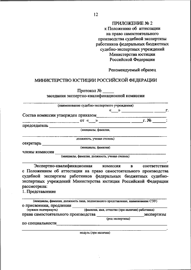 "ОБ УТВЕРЖДЕНИИ ПОЛОЖЕНИЯ ОБ АТТЕСТАЦИИ НА ПРАВО САМОСТОЯТЕЛЬНОГО ПРОИЗВОДСТВА СУДЕБНОЙ ЭКСПЕРТИЗЫ РАБОТНИКОВ ФЕДЕРАЛЬНЫХ БЮДЖЕТНЫХ СУДЕБНО - ЭКСПЕРТНЫХ УЧРЕЖДЕНИЙ МИНИСТЕРСТВА ЮСТИЦИИ РОССИЙСКОЙ ФЕДЕРАЦИИ"