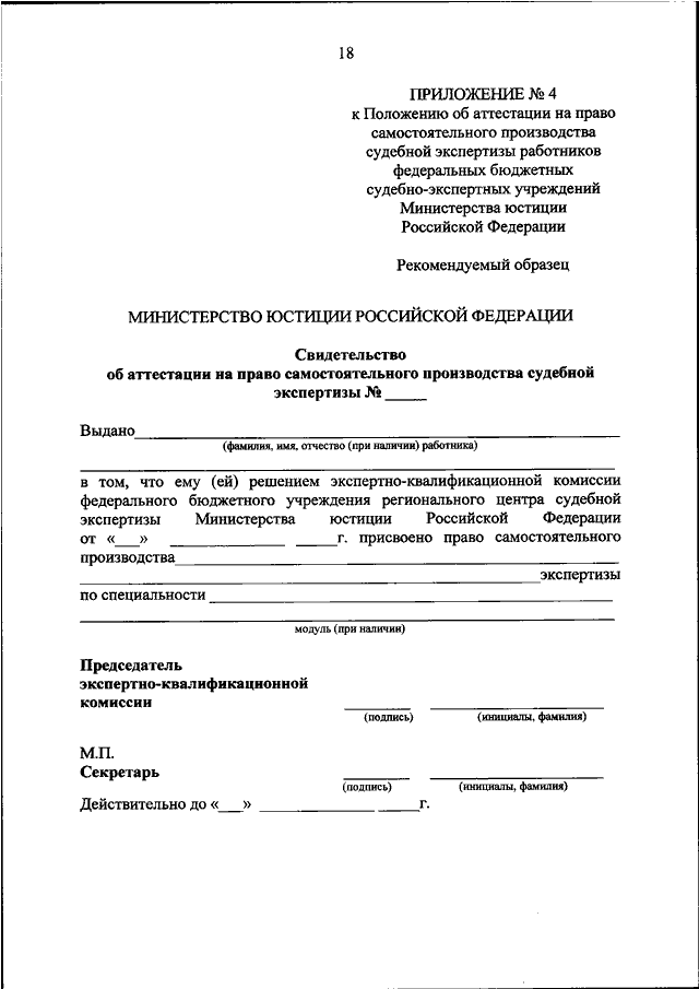 "ОБ УТВЕРЖДЕНИИ ПОЛОЖЕНИЯ ОБ АТТЕСТАЦИИ НА ПРАВО САМОСТОЯТЕЛЬНОГО ПРОИЗВОДСТВА СУДЕБНОЙ ЭКСПЕРТИЗЫ РАБОТНИКОВ ФЕДЕРАЛЬНЫХ БЮДЖЕТНЫХ СУДЕБНО - ЭКСПЕРТНЫХ УЧРЕЖДЕНИЙ МИНИСТЕРСТВА ЮСТИЦИИ РОССИЙСКОЙ ФЕДЕРАЦИИ"