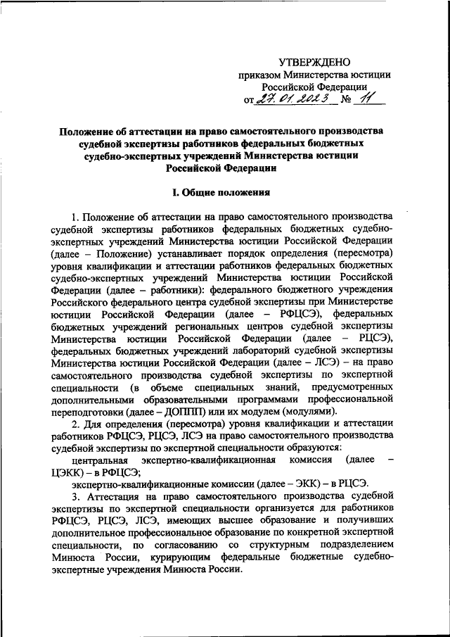ПРИКАЗ Минюста РФ от 27.01.2023 N 11