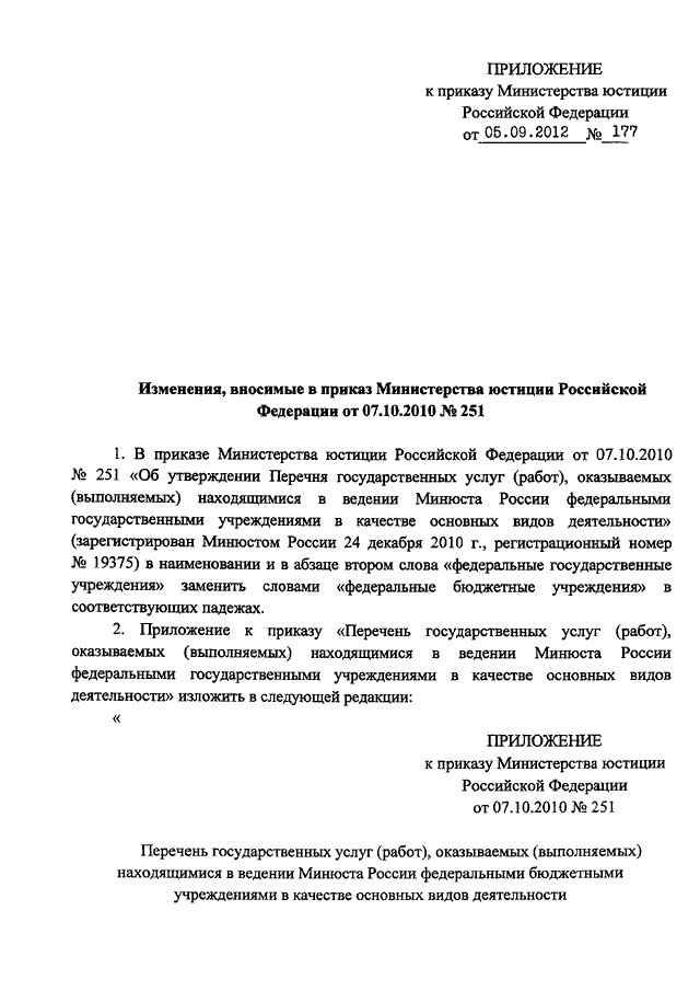 ПРИКАЗ Минюста РФ от 05.09.2012 N 177