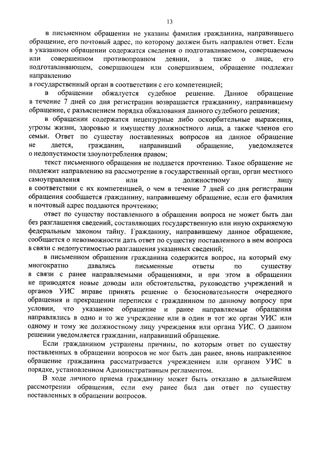 "ОБ УТВЕРЖДЕНИИ АДМИНИСТРАТИВНОГО РЕГЛАМЕНТА ФЕДЕРАЛЬНОЙ СЛУЖБЫ ИСПОЛНЕНИЯ НАКАЗАНИЙ ПО ПРЕДОСТАВЛЕНИЮ ГОСУДАРСТВЕННОЙ УСЛУГИ ПО ОРГАНИЗАЦИИ ПРИЕМА ГРАЖДАН, ОБЕСПЕЧЕНИЮ СВОЕВРЕМЕННОГО И В ПОЛНОМ ОБЪЕМЕ РАССМОТРЕНИЯ ИХ УСТНЫХ И ПИСЬМЕННЫХ ОБРАЩЕНИЙ ПО ВОПРОСАМ, КАСАЮЩИМСЯ ДЕЯТЕЛЬНОСТИ УГОЛОВНО - ИСПОЛНИТЕЛЬНОЙ СИСТЕМЫ, ПРИНЯТИЮ ПО НИМ СООТВЕТСТВУЮЩИХ РЕШЕНИЙ И НАПРАВЛЕНИЮ ОТВЕТОВ В УСТАНОВЛЕННЫЙ ЗАКОНОДАТЕЛЬСТВОМ РОССИЙСКОЙ ФЕДЕРАЦИИ СРОК"