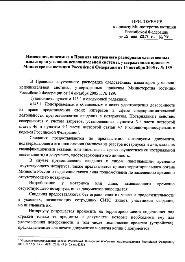 ПРИКАЗ Минюста РФ от 12.05.2017 N 79